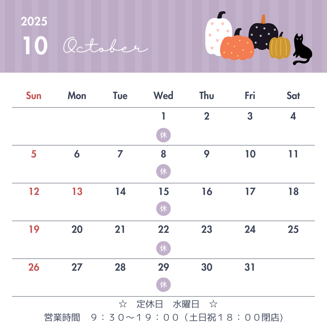 【営業時間】 9:30~19:00 (土・日・祝日のみ18:00閉店) 【定休日】 毎週水曜日 -